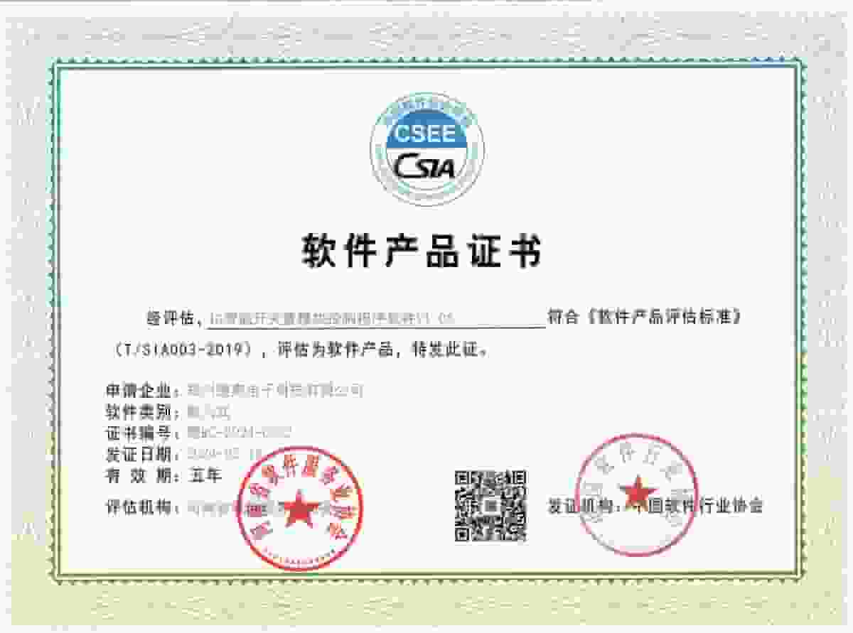 软件产品证书-远程开关量模块控制程序软件V8.00