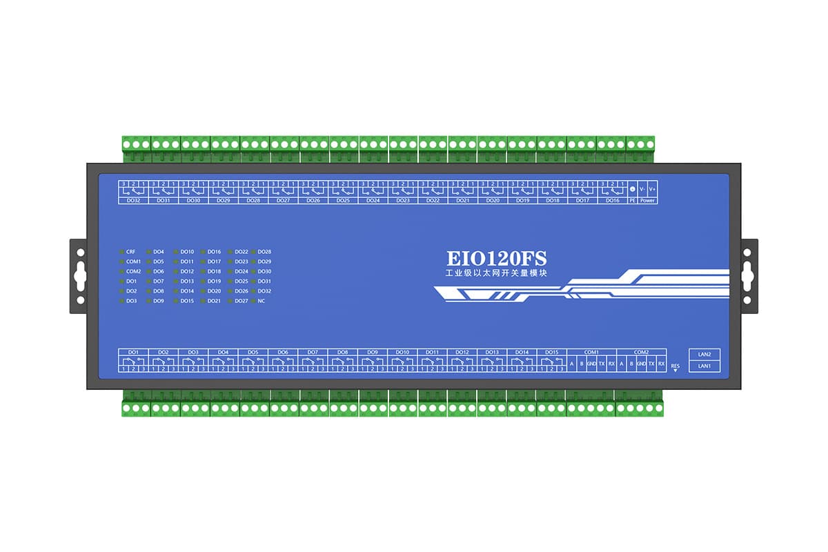我公司研发的EUIO20G2开关量模块,提供64路I/O输出、2路RS485、2路电源输出,主要用来采集现场的I/O信号或电压信号,输出开关控制信号,同时还集合了串口服务器和Modbus网关的功能。产品完全按照工业级标准进行设计,功能强大、抗干扰能力强、防雷击及浪涌冲击,宽电压输入,能够在-40℃~80℃范围内长期稳定工作。